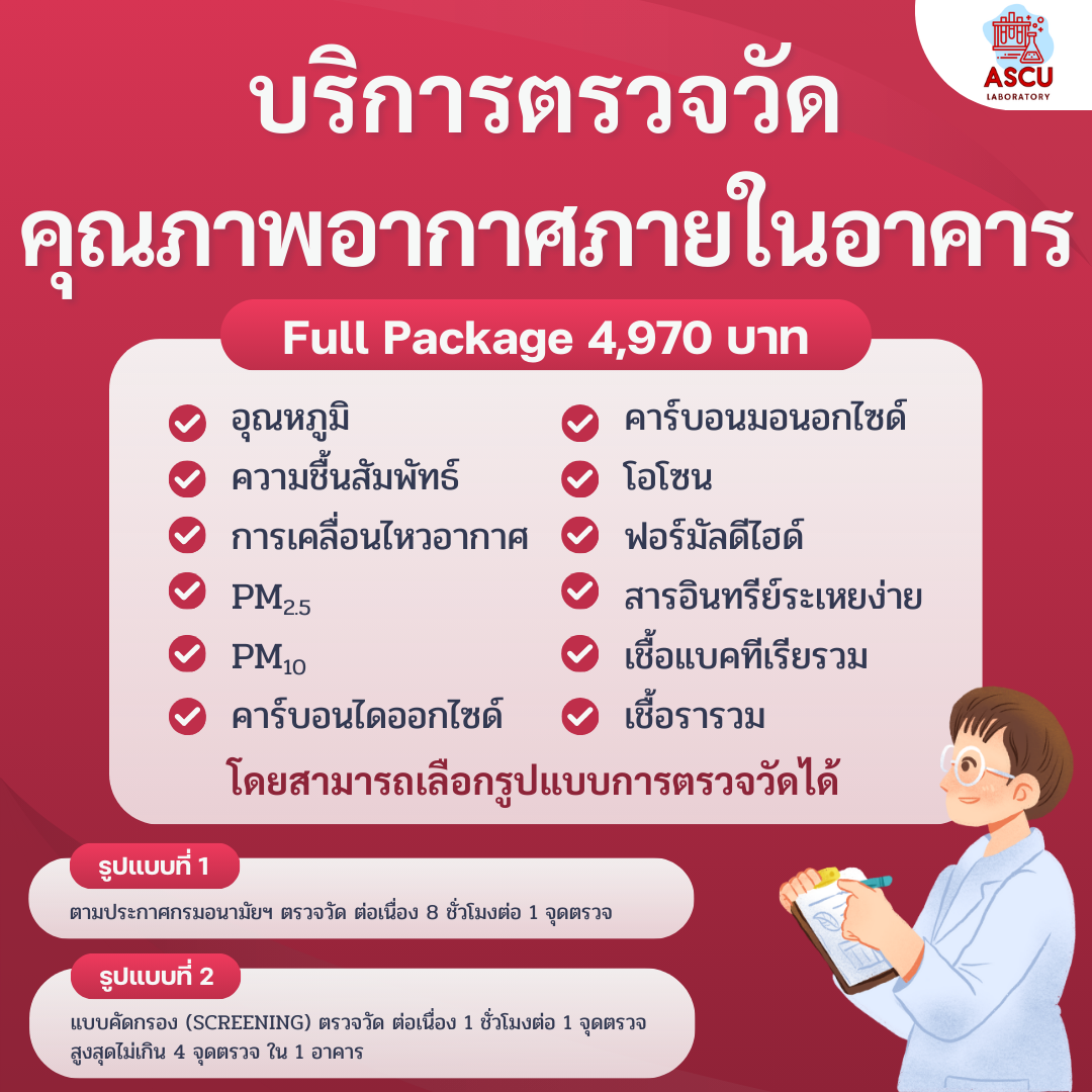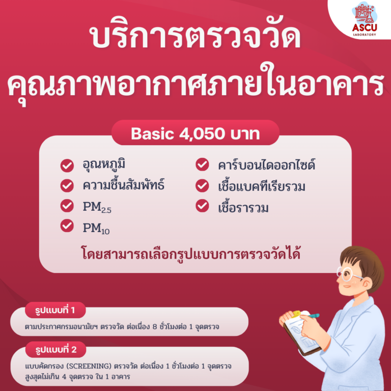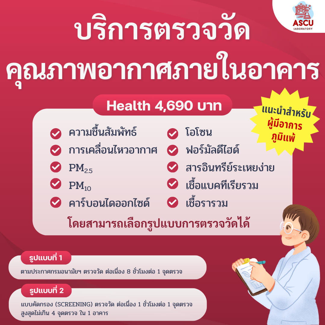 ตรวจวัดตาม ประกาศกรมอนามัย เรื่อง ค่าเฝ้าระวังคุณภาพอากาศภายในอาคารสาธารณะ พ.ศ.2565